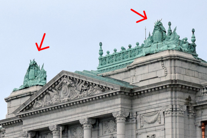 ちなみに赤坂迎賓館のあちこちに見られる鎧兜の武将風の彫刻